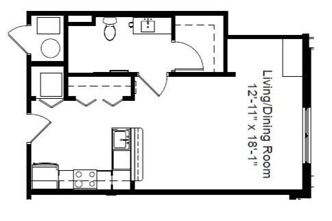 Apartment Model: Unit 6-2.1 EfficiencyFrom $955Studio, 1 Bath, 479 sq ftAvailable Now![]()