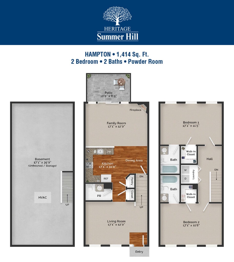 The Hampton - Floorplan 1 Apartment Unit: HamptonApartment Model: The Hampton$2,9952 Bedroom, 2.5 Bath, 1414 sq ftAvailable February 2, 2026The Hampton End Location