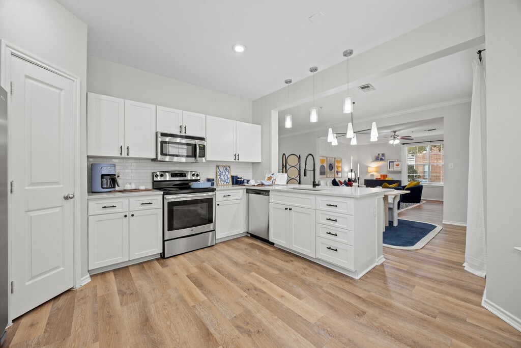 July 25, 2015We just moved to Texas from California for a job and needed a rental until we could find a permanent home. Most of the homes we looked at were very outdated, especially the kitchen. We found this place online and were very impressed with this complex when we came to check it out. The people are friendly and the office is very nice. We like the large kitchen and dual walk-in closets in the master bedroom on the 3 bedroom unit. Also, the large garage is nice so we can store all of our stuff ...without having to get a storage space. So far, we have not heard any noise from our neighbors. There are reviews that the office staff is slow to respond to requests, but they have been very timely in responding to our needs.Read MoreReview from Apartments.com
