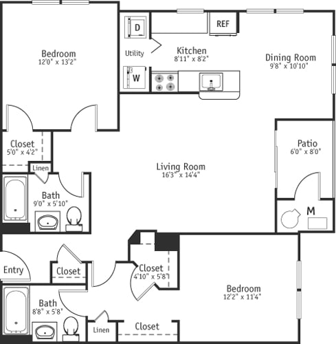 Apartment Model: DoverFrom $3,0902 Bedroom, 2 Bath, 1114 sq ftAvailable Now![]()