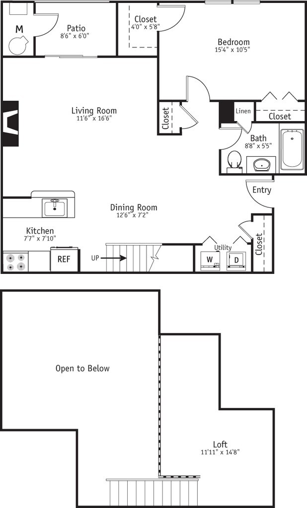1 Bed, 1 Bath, 615 sq ftModel Gallery