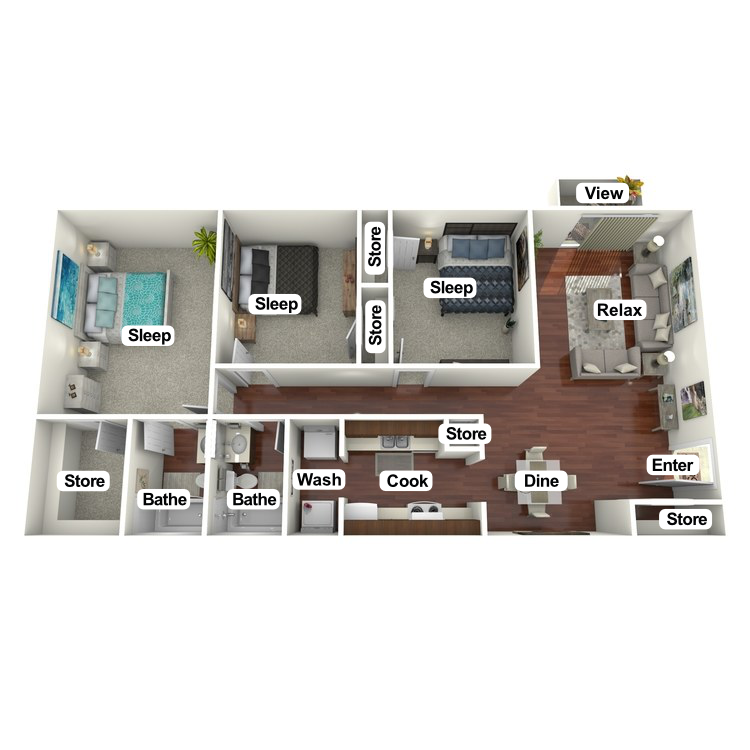 Apartment Model: The River$1,2993 Bedroom, 2 Bath, 1250 sq ftUnavailable![]()