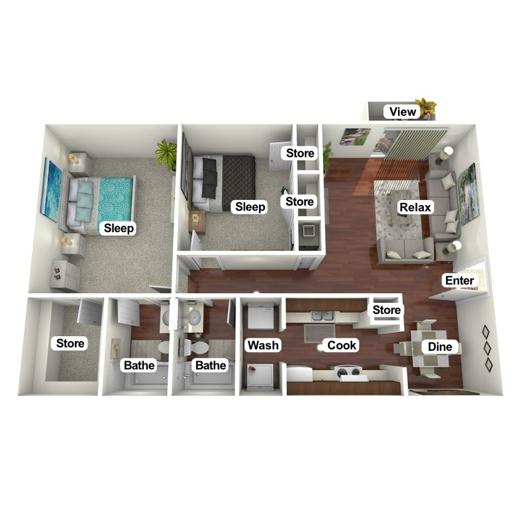 2 Beds, 2 Baths, 1030 sq ftModel Gallery