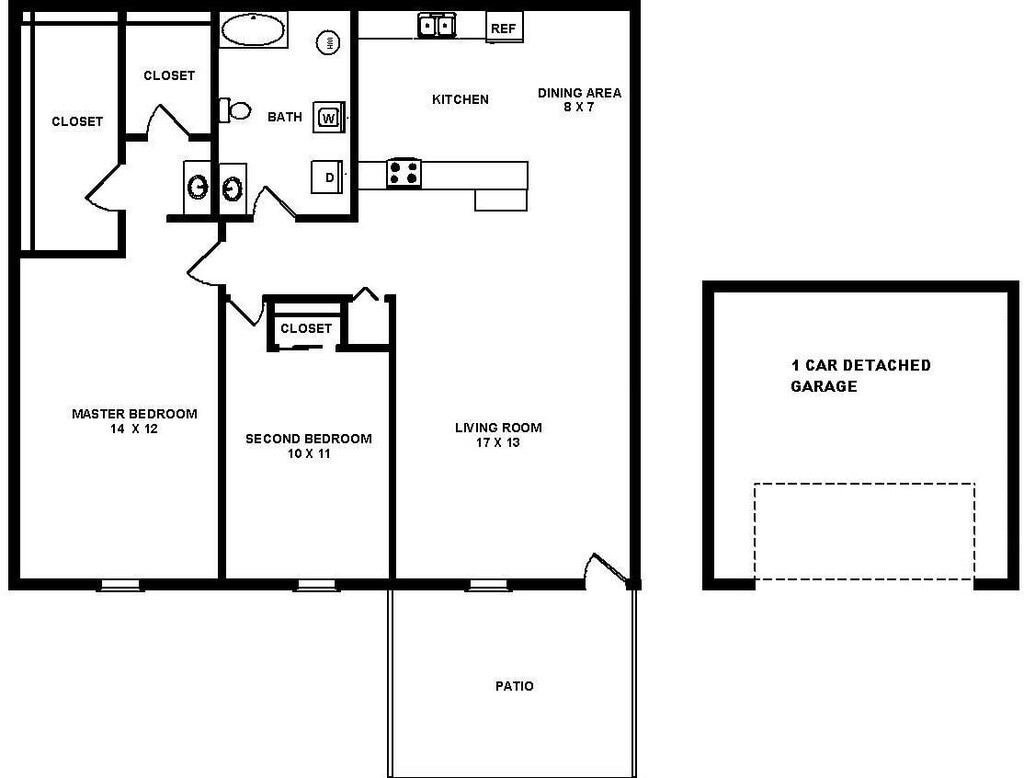 Ranch-Detached Garage 2 Bdrm - Floorplan 2 Apartment Unit: 82Apartment Model: Ranch-Detached Garage 2 Bdrm$1,1982 Bedroom, 1 Bath, 963 sq ftAvailable November 8, 2025Ranch-Attached Garage 2 Bdrm