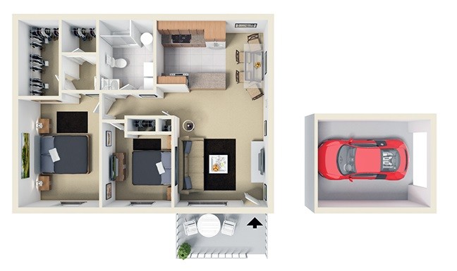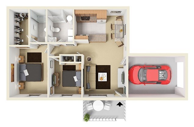 Apartment Model: Ranch-Attached Garage 2 BdrmFrom $1,2782 Bedroom, 2 Bath, 963 sq ftUnavailable![]()