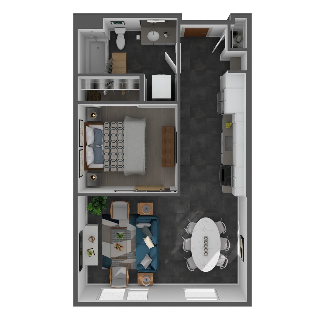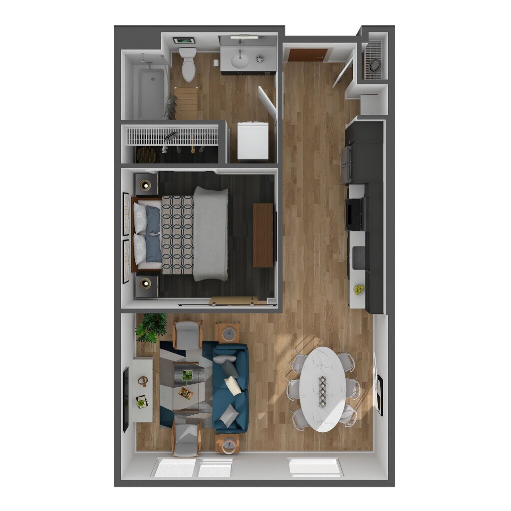 1 Bed, 1 Bath- E - Floorplan 1 Apartment Unit: 502Apartment Model: 1 Bed, 1 Bath- E$2,3901 Bedroom, 1 Bath, 721 sq ftAvailable Now![]()