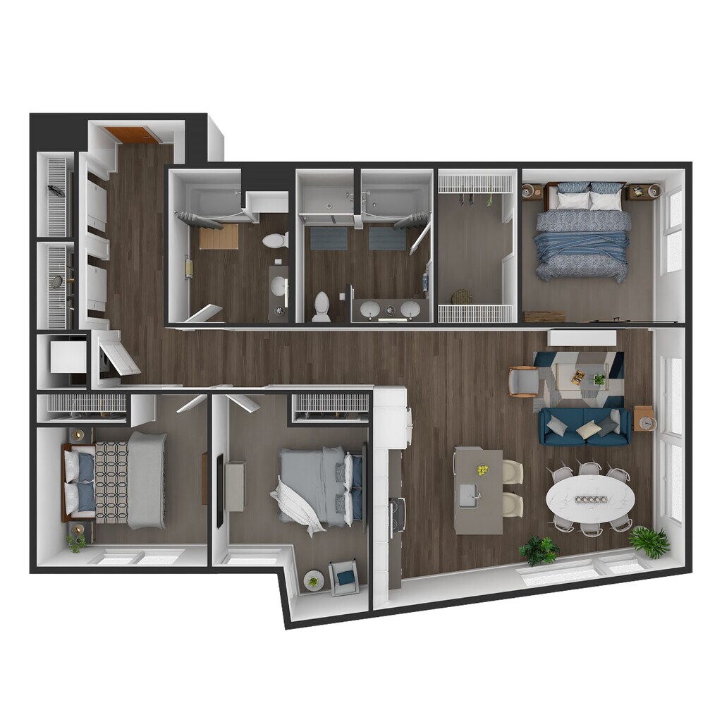 Apartment Model: 1 Bed, 1 Bath- E$2,3901 Bedroom, 1 Bath, 721 sq ftAvailable Now![]()