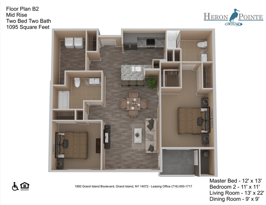 2 Beds, 2 Baths, 1265 sq ftAvailable NowModel Gallery