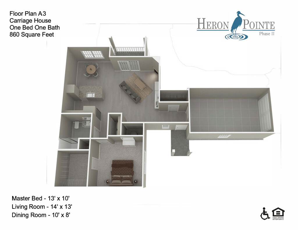 1 Bedroom to 3 Bedroom Apartments at Heron Pointe currently range from $1,656 to $2,326
