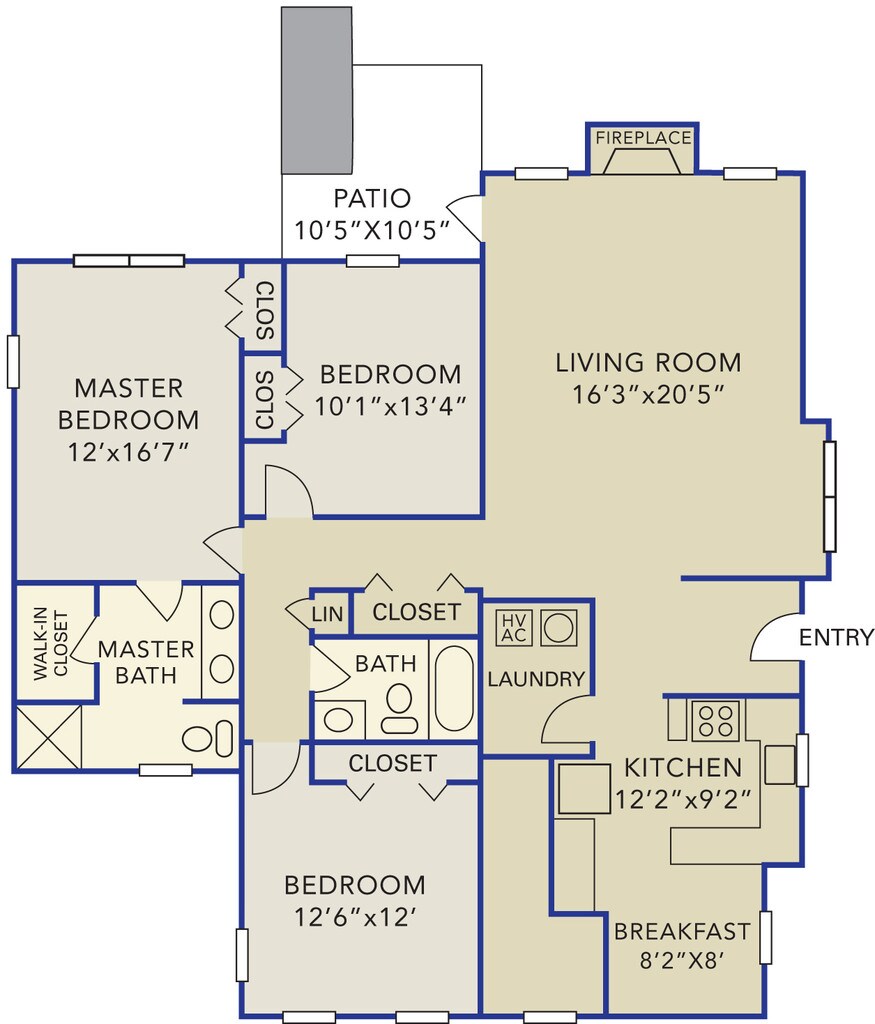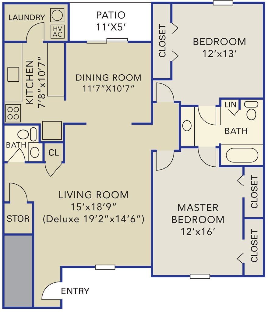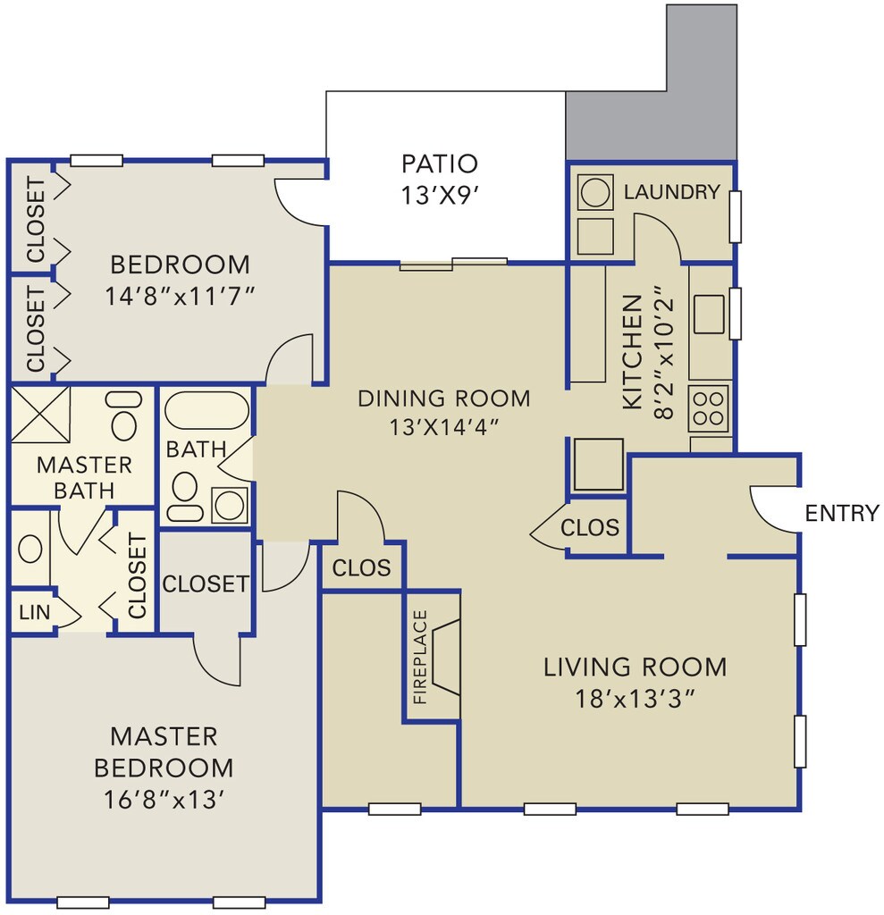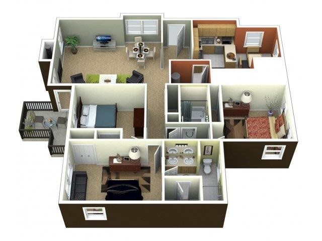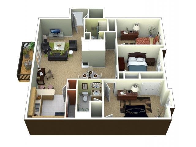 2 Beds, 2 Baths, 1310 sq ftAvailable NowLargest 2 BedroomThis is the largest 2 Bedroom at this PropertyModel Gallery