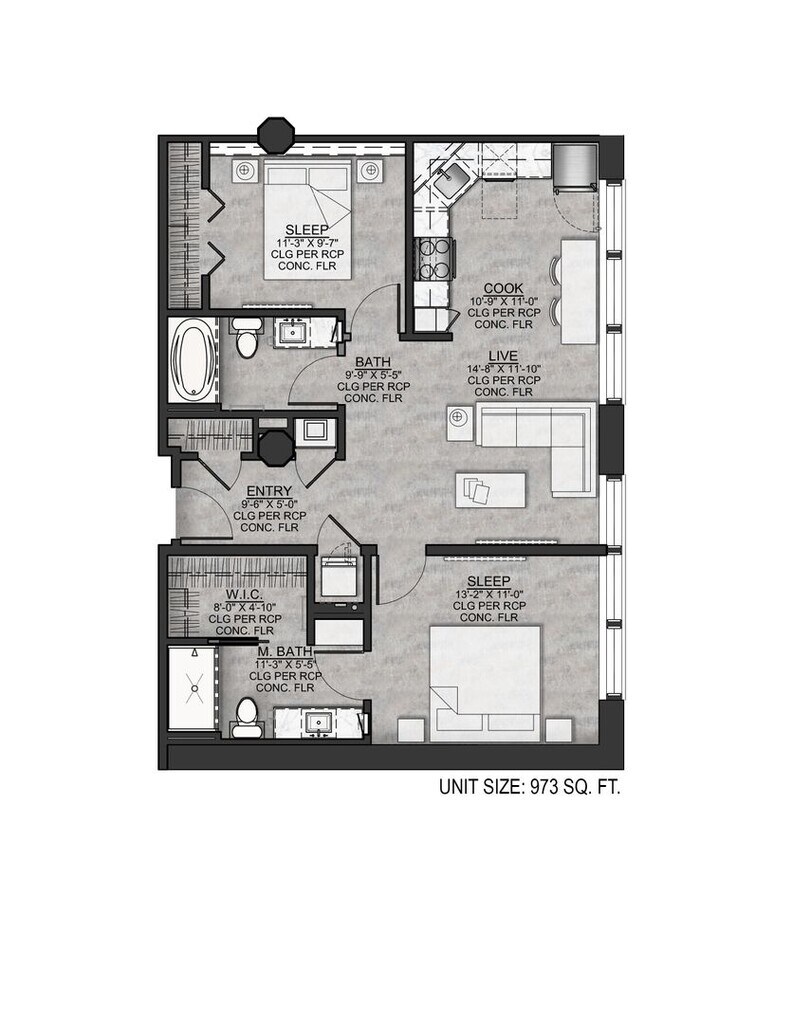 C1-Two bedroom/Two bath - Image 1 Apartment Unit: 302Apartment Model: C1-Two bedroom/Two bath$1,5392 Bedroom, 2 Bath, 973 sq ftAvailable NowApartment Unit: 202Apartment Model: C1-Two bedroom/Two bath$1,5392 Bedroom, 2 Bath, 973 sq ftAvailable Now