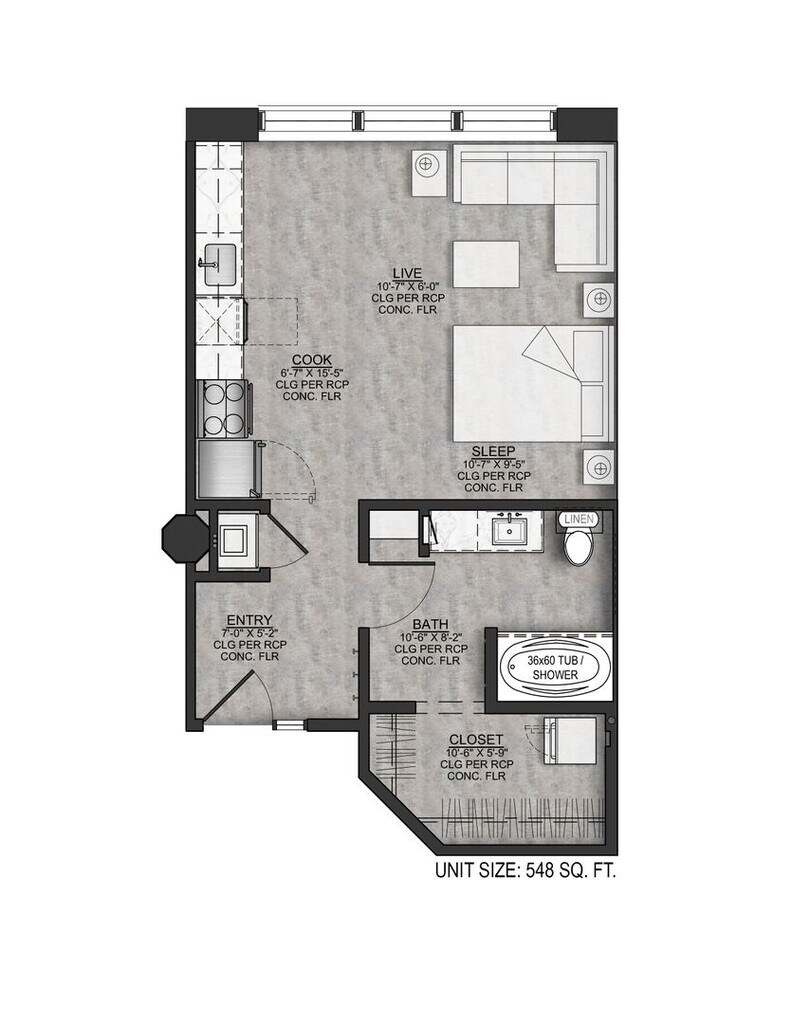 Studio, 1 Bath, 548 sq ftAvailable NowModel Gallery