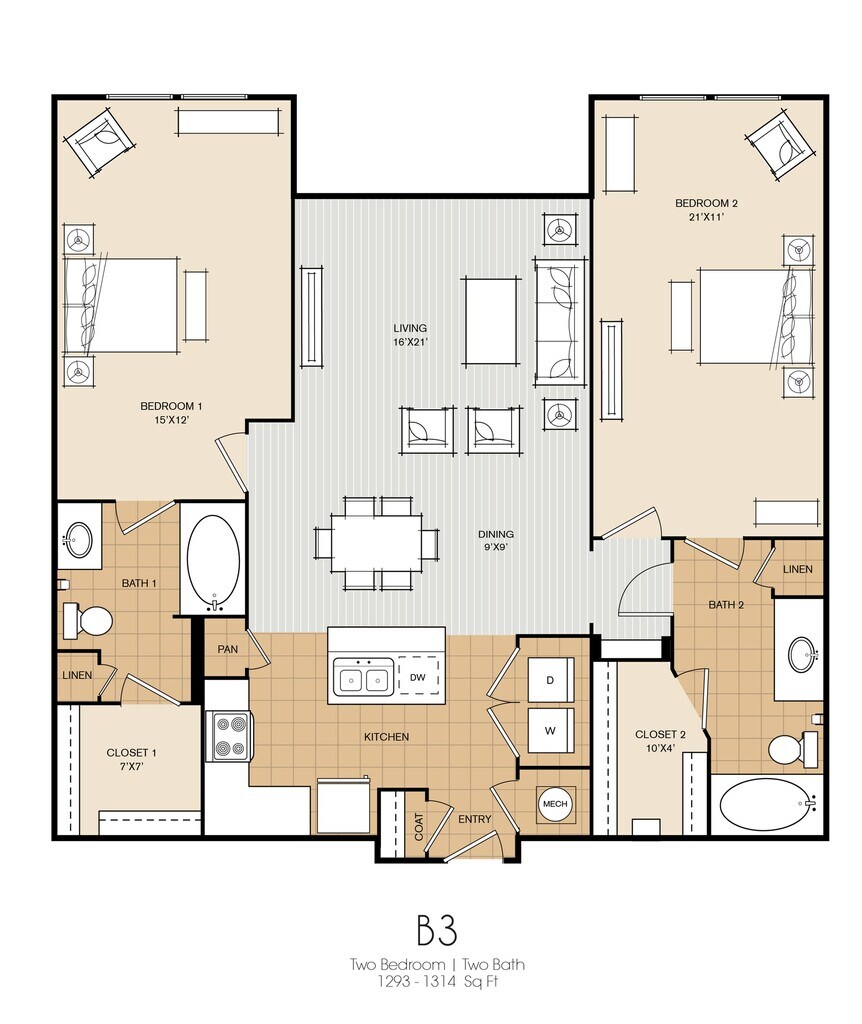 1 Bed, 1 Bath, 861 sq ftAvailable NowModel Gallery