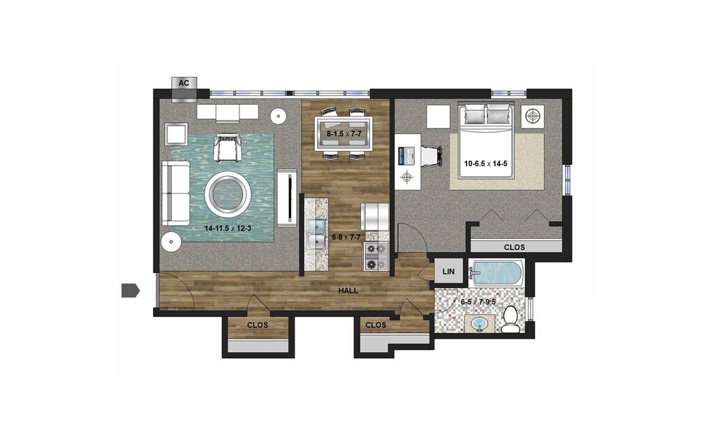 1 Bed, 1 Bath, 670 sq ftTotal Monthly PriceAvailable Nov 7Model Gallery