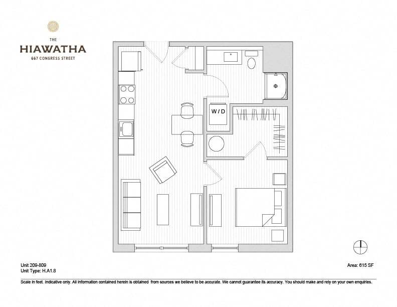 Hiawatha 1BD Plan H - Floorplan 1 Apartment Unit: 813Apartment Model: Hiawatha 1BD Plan H$2,3031 Bedroom, 1 Bath, 615 sq ftAvailable February 18, 2026Hiawatha 1BD Plan A