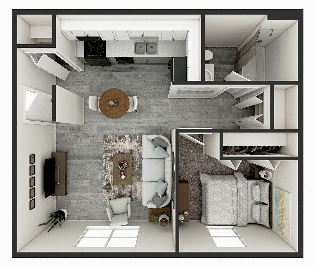 Apartment Model: 1 bd 1 ba Classic Flat$7991 Bedroom, 1 Bath, 576 sq ftAvailable May 22, 2026FloorplansPhotos![]()