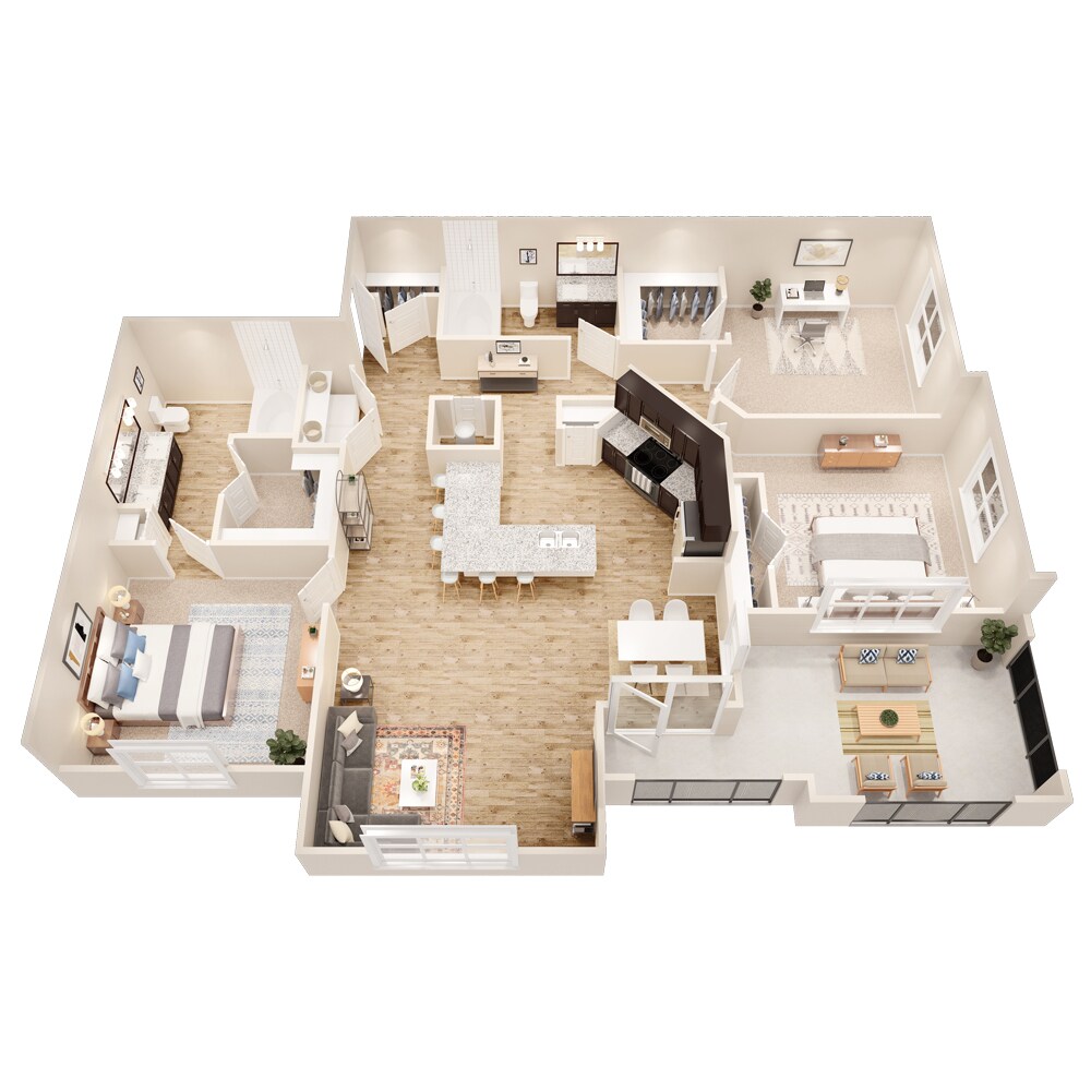 1 Bedroom to 3 Bedroom Apartments at Hickory Creek Ranch Apartments currently range from $1,190 to $2,050