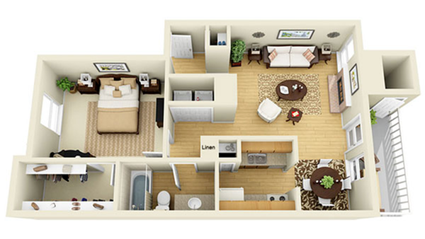1 Bed, 1 Bath, 545 sq ftModel Gallery