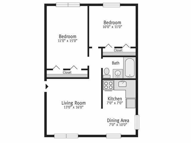 Apartment Model: Two Bedroom$1,6002 Bedroom, 1 Bath, 770 sq ftUnavailableTwo Bedroom - Floorplan 1 Two Bedroom - Floorplan 2 Two Bedroom - Floorplan 3