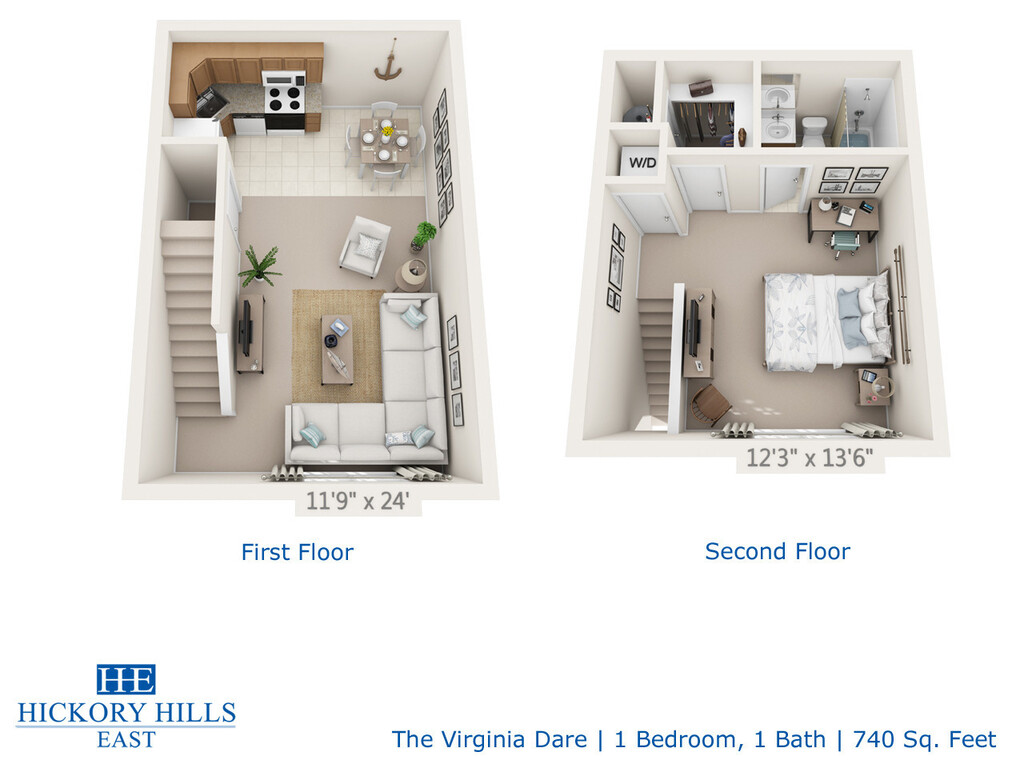 1 Bed, 1 Bath, 740 sq ftModel Gallery