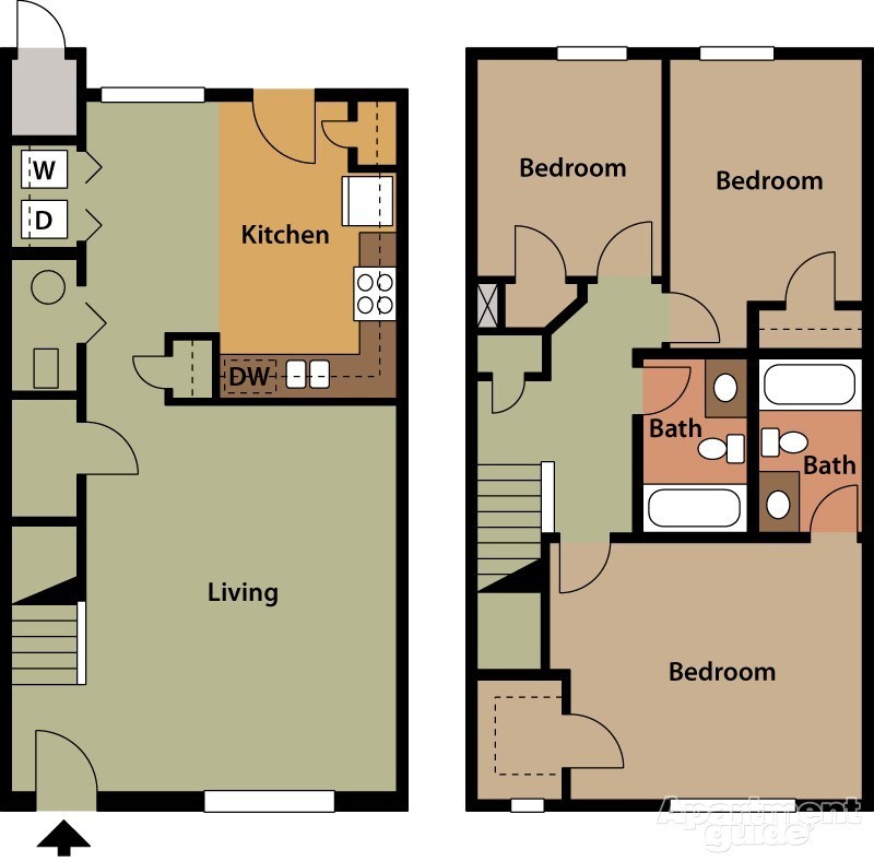 Apartment Model: 3 Bed 2.5 Bath Townhome3 Bedroom, 2.5 Bath, 1315 sq ftUnavailableFloorplansPhotos![]()