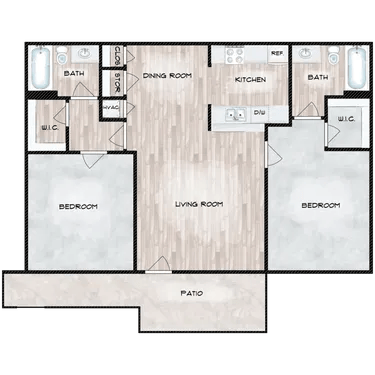 Apartment Model: 2 Bedroom, 2 Bathroom - 60%2 Bedroom, 2 Bath, 865 sq ftAvailable Now![]()