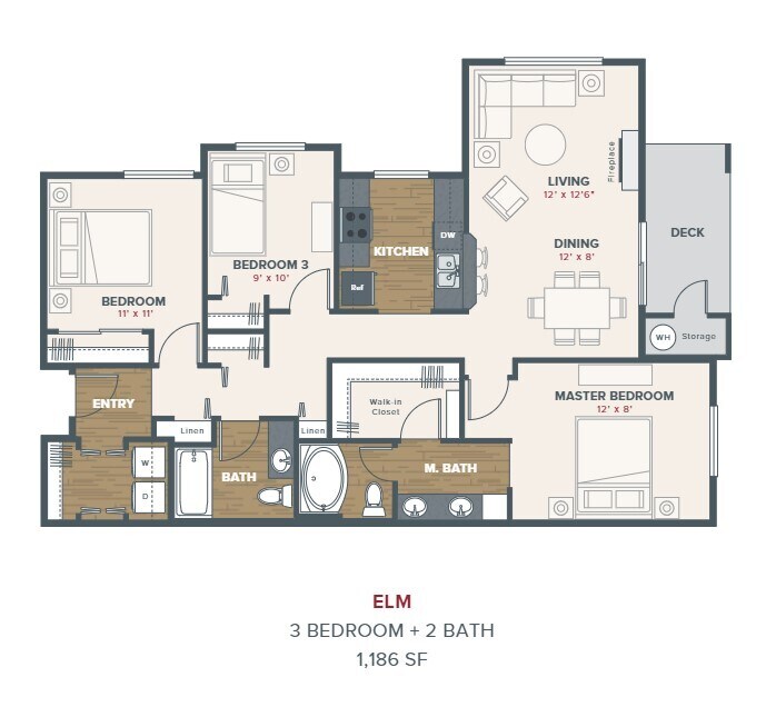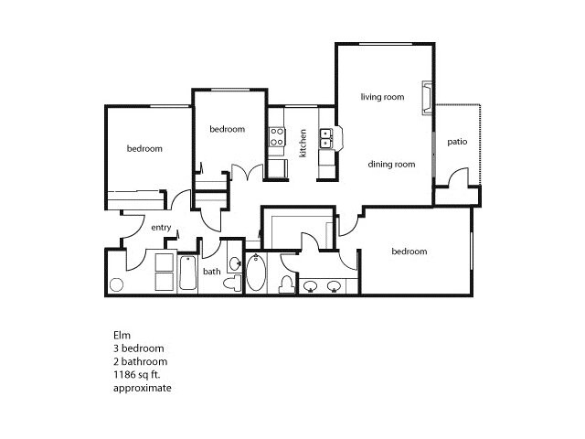 Apartment Model: ElmCall For Rates3 Bedroom, 2 Bath, 1186 sq ftUnavailable![]()