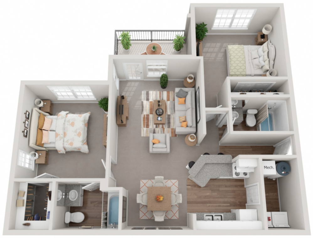 2 Beds, 2 Baths, 1190 sq ftAvailable NowLargest 2 BedroomThis is the largest 2 Bedroom at this PropertyModel Gallery