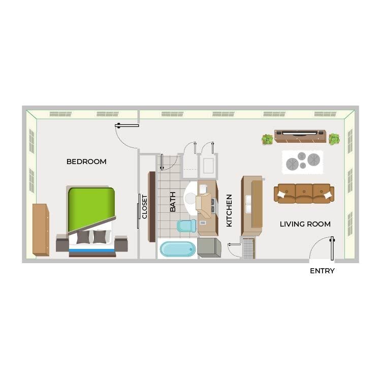 1x1 Standard - Image 7 Apartment Unit: 215Apartment Model: 1x1 Standard$7561 Bedroom, 1 Bath, 750 sq ftAvailable Now1x1 Large