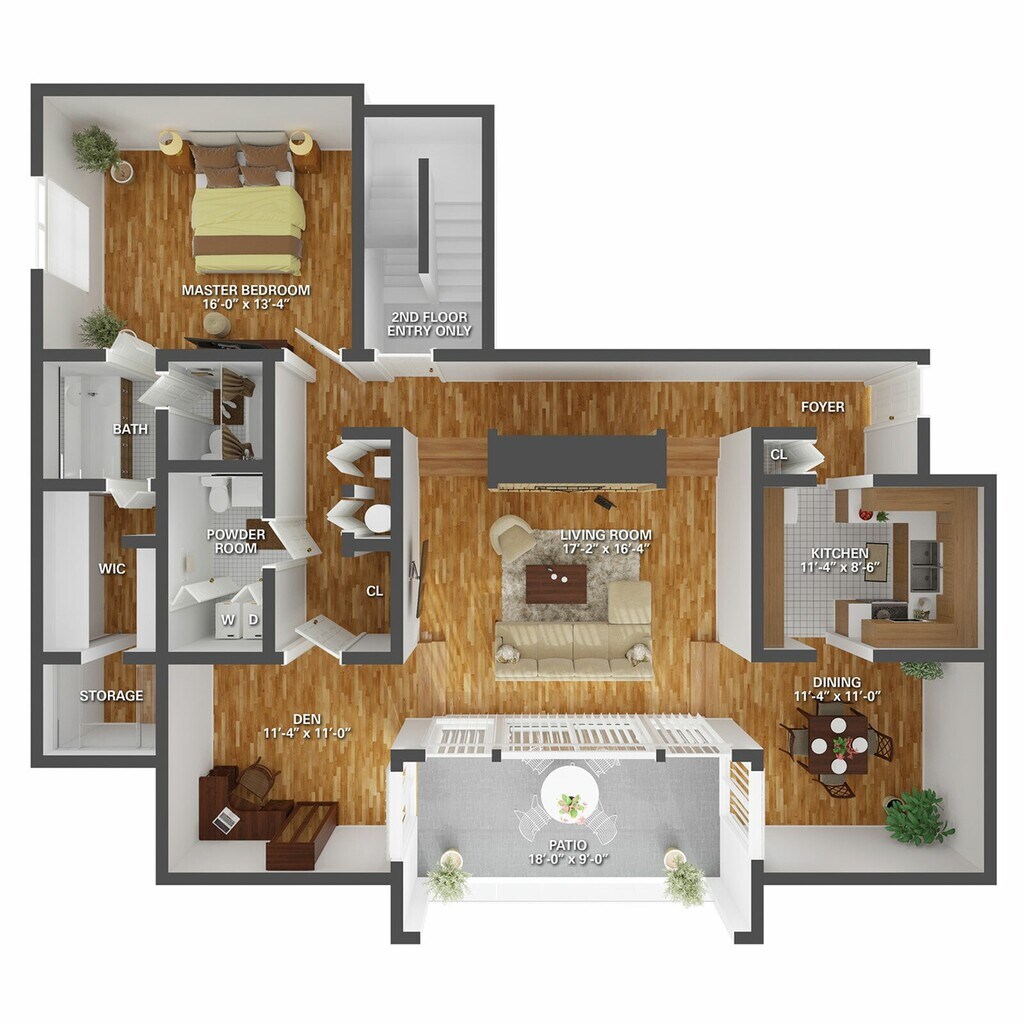 Apartment Model: Hidden Lake - DogwoodFrom $1,7651 Bedroom, 1 Bath, 1093 sq ftAvailable Now![]()