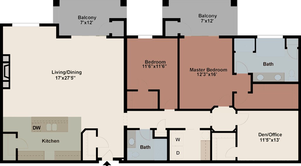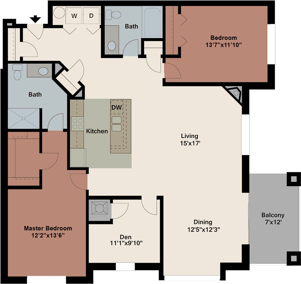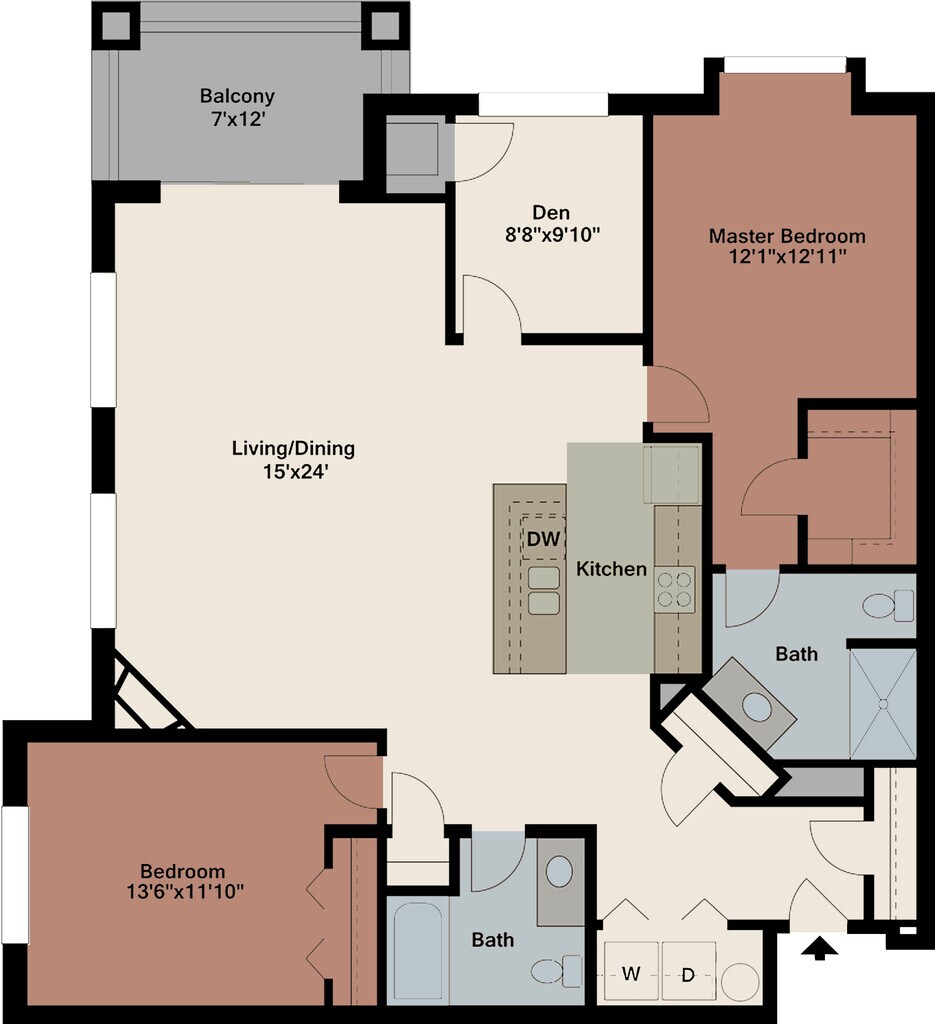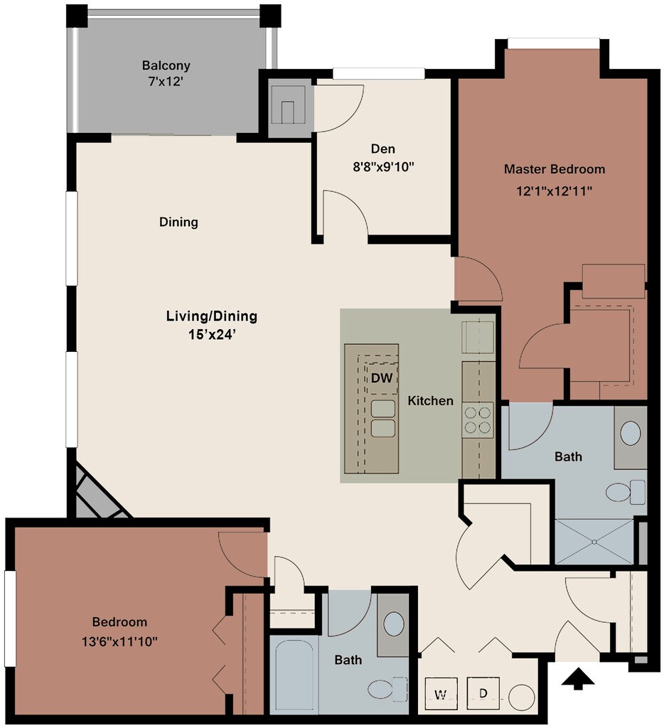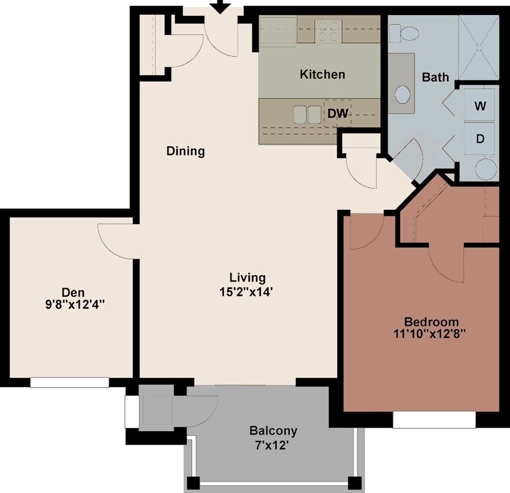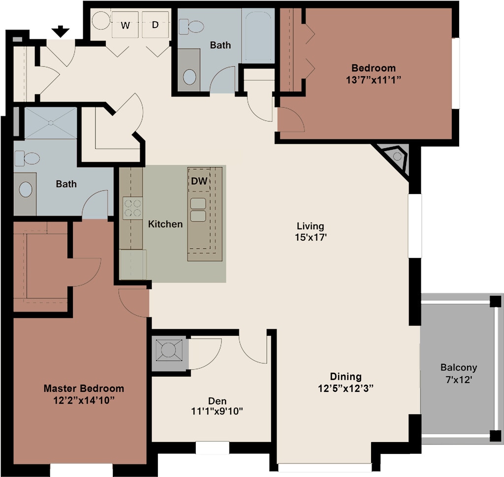 The Blue Spruce II + Den - 3000 Building B - Floorplan 1 2 Bedrooms