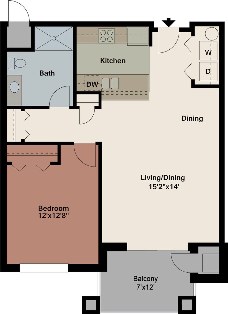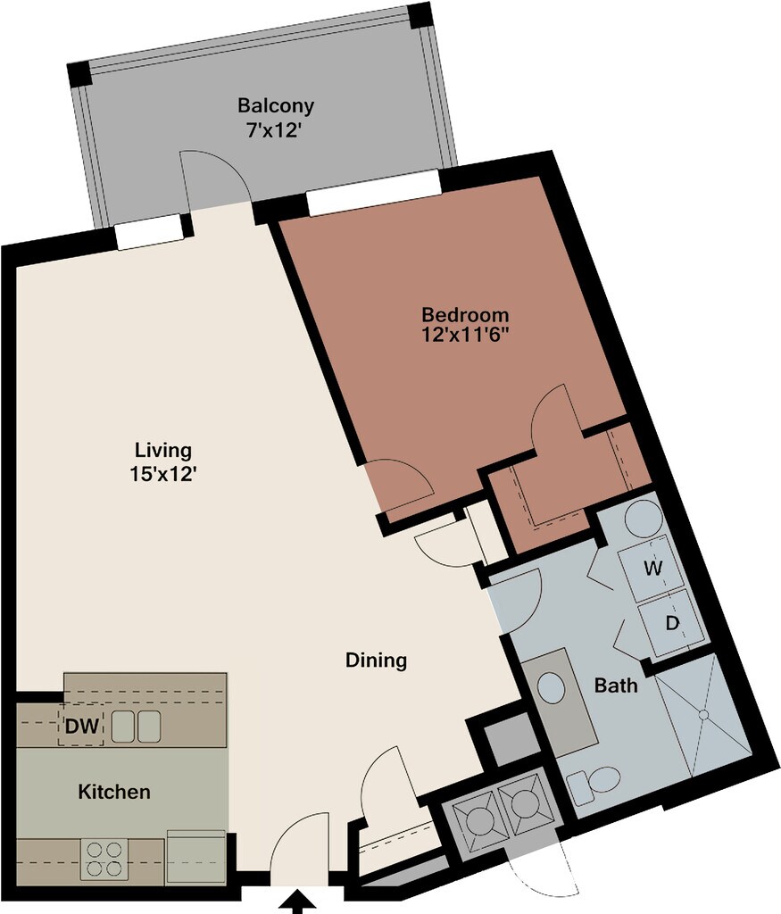 Apartment Model: The Willow - 3000 Building B$1,6451 Bedroom, 1 Bath, 860 sq ftAvailable Now![]()