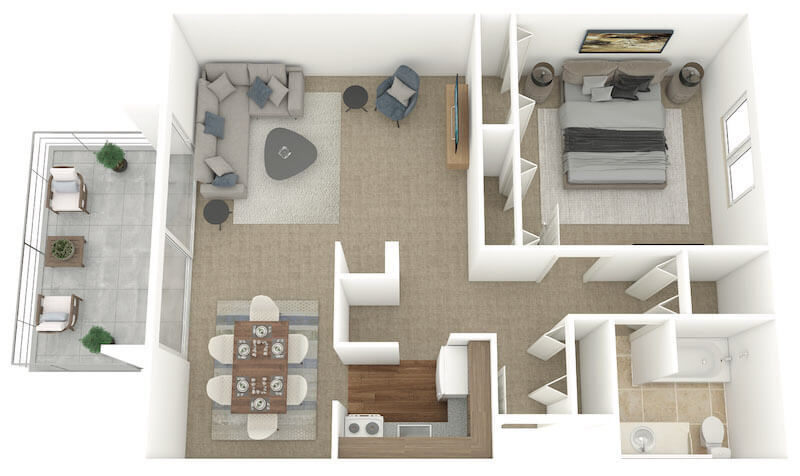 1 Bed, 1 Bath, 798 sq ftAvailable NowLargest 1 BedroomThis is the largest 1 Bedroom at this PropertyModel Gallery