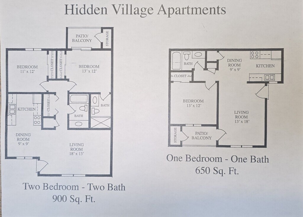 1 Bedroom to 2 Bedroom Apartments at Hidden Village currently range from $1,150 to $1,400