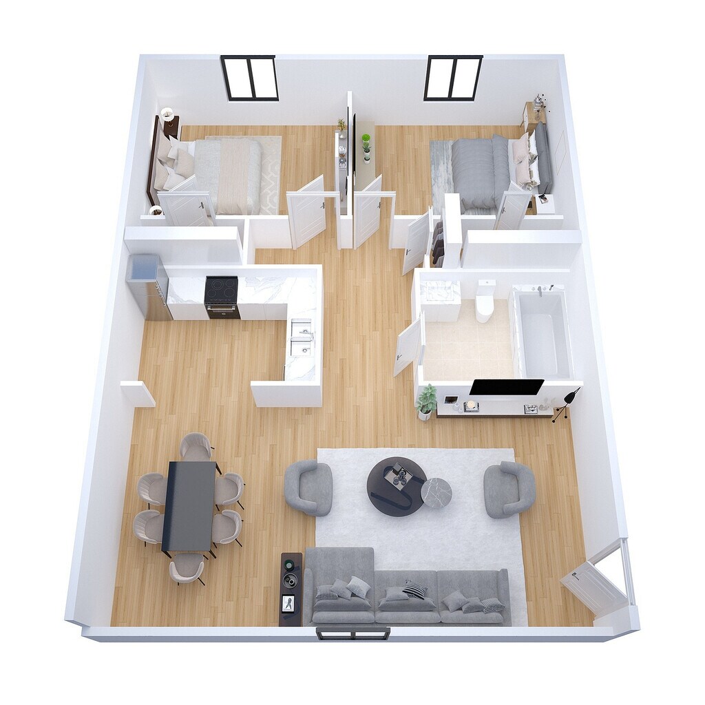 2 Beds, 1 Bath, 850 sq ftModel Gallery