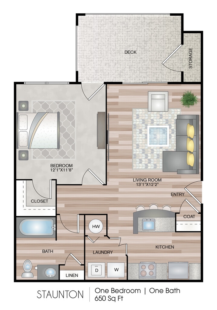 Apartment Model: StauntonFrom $1,5351 Bedroom, 1 Bath, 650 sq ftAvailable Now![]()