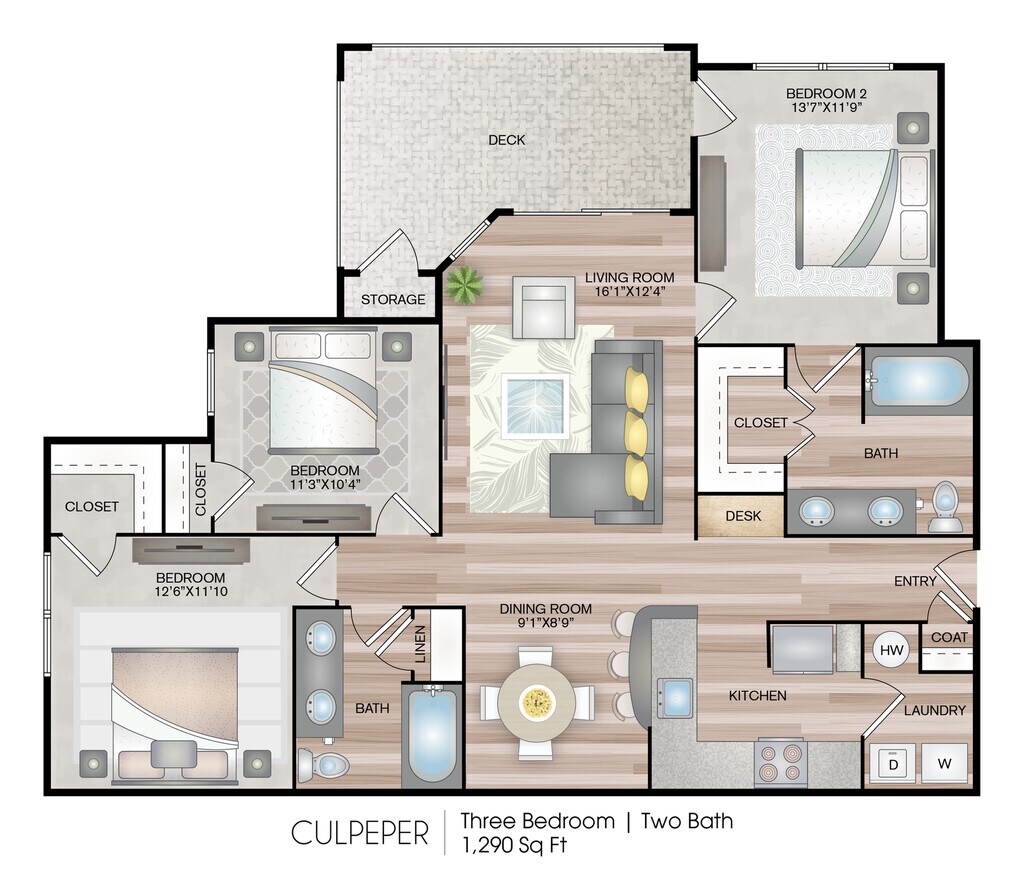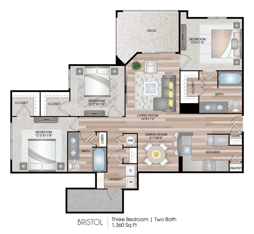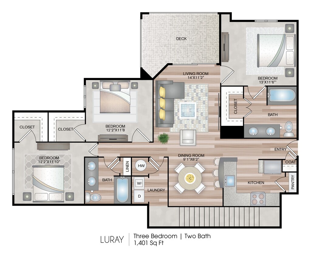 1 Bed, 1 Bath, 833 sq ftAvailable NowLargest 1 BedroomThis is the largest 1 Bedroom at this PropertyModel Gallery