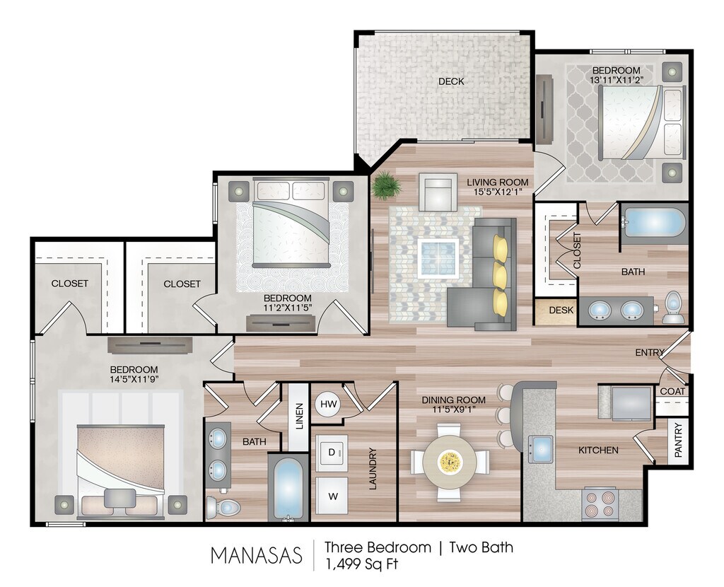 Apartment Model: WashingtonFrom $1,6401 Bedroom, 1 Bath, 833 sq ftAvailable Now![]()