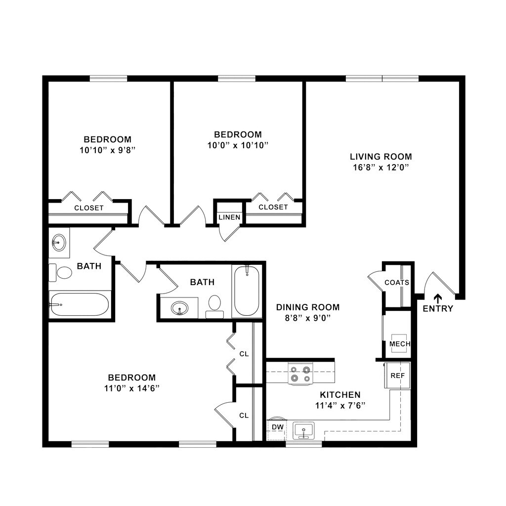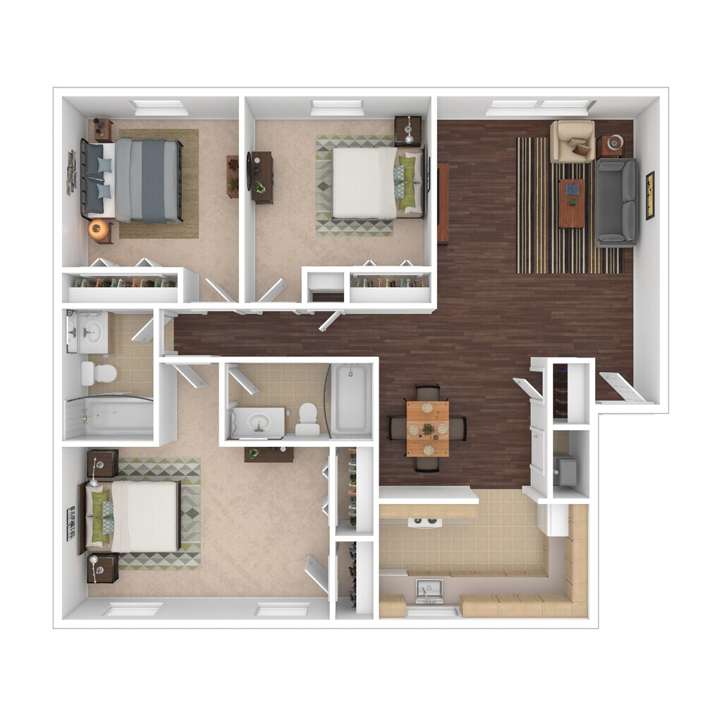 Apartment Model: Hidenwood - The Hidenwood - 3 Bed$1,4403 Bedroom, 2 Bath, 1038 sq ftUnavailable![]()