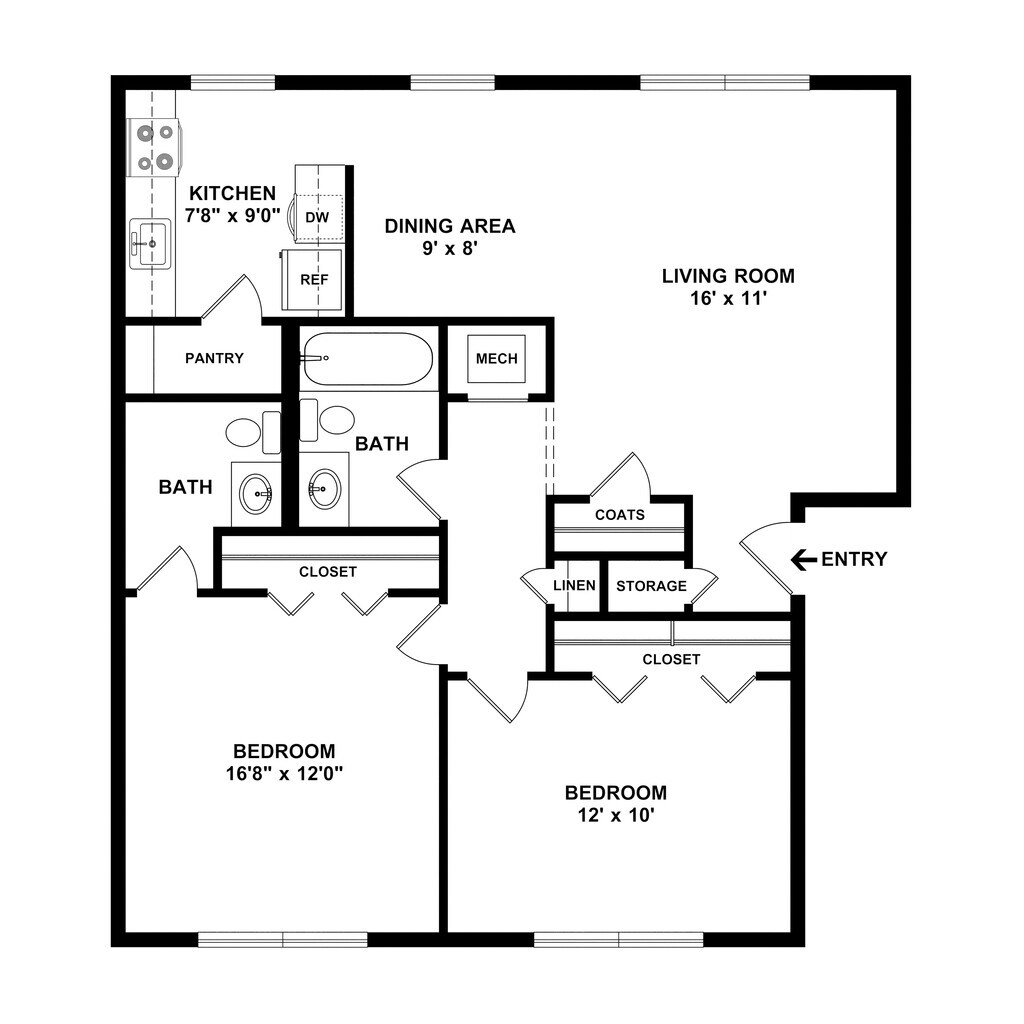 2 Beds, 1.5 Baths, 842 sq ftAvailable NowModel Gallery