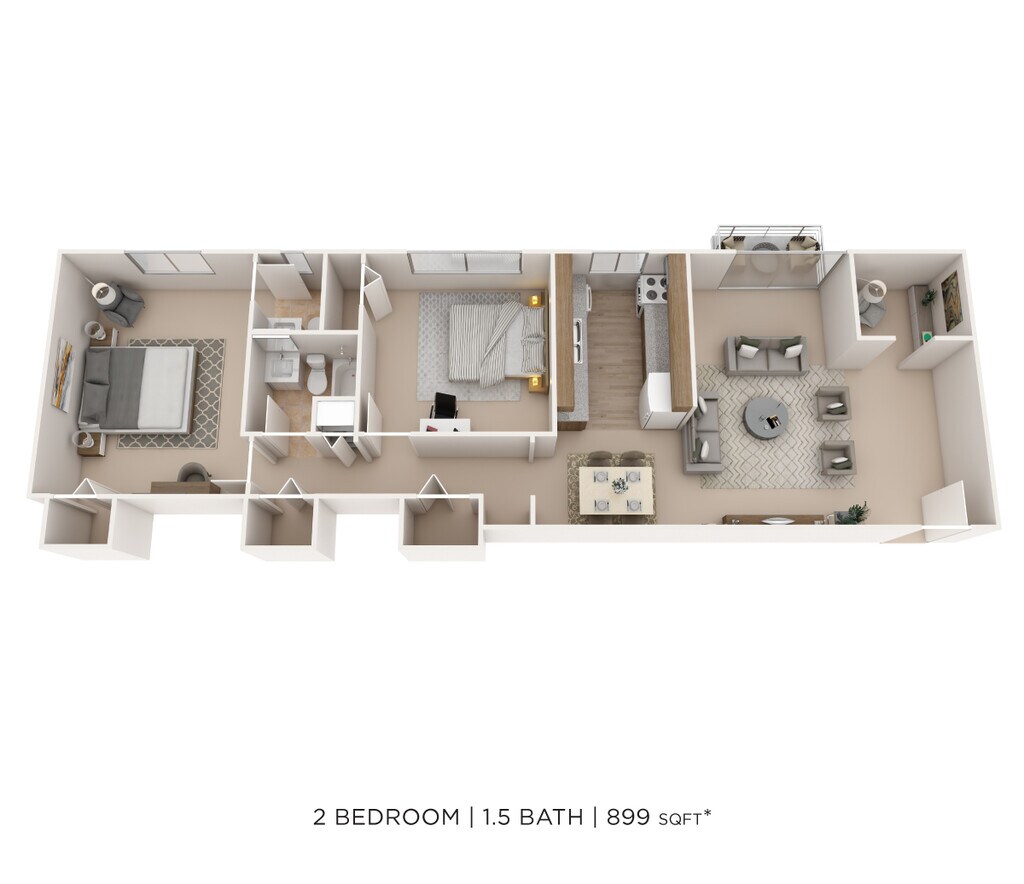 Apartment Model: One Bedroom-608 sqftFrom $1,2051 Bedroom, 1 Bath, 608 sq ftAvailable Now![]()