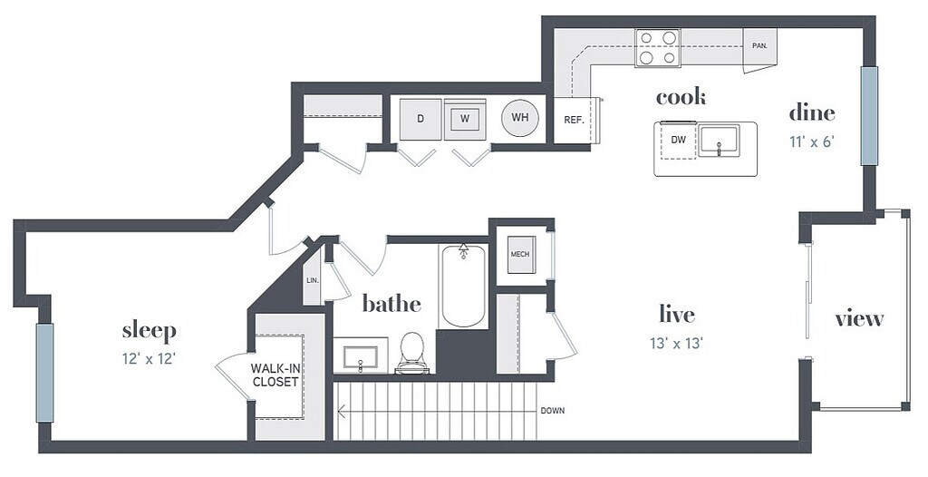 A - Floorplan 2 Apartment Unit: 13-2403Apartment Model: AFrom $1,7951 Bedroom, 1 Bath, 801 sq ftAvailable May 7, 2026Floorplan A2