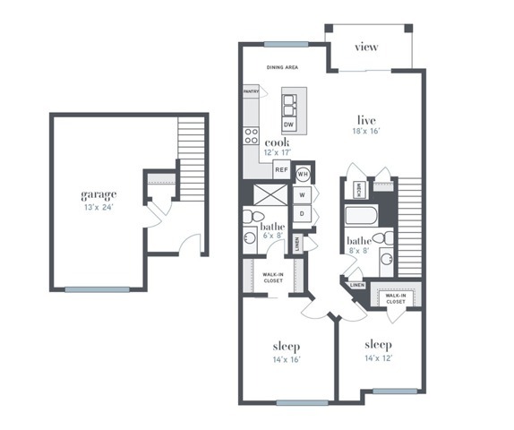2 Beds, 2 Baths, 1681 sq ftAvailable NowLargest 2 BedroomThis is the largest 2 Bedroom at this PropertyModel Gallery