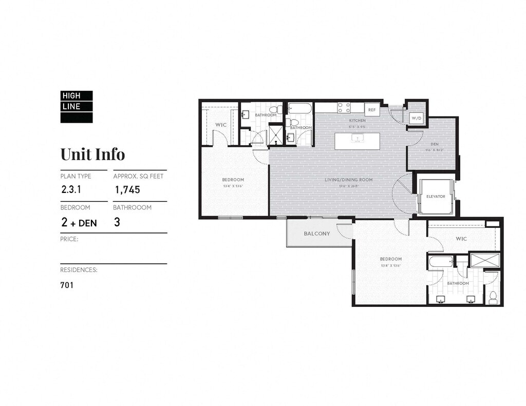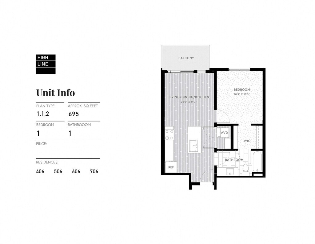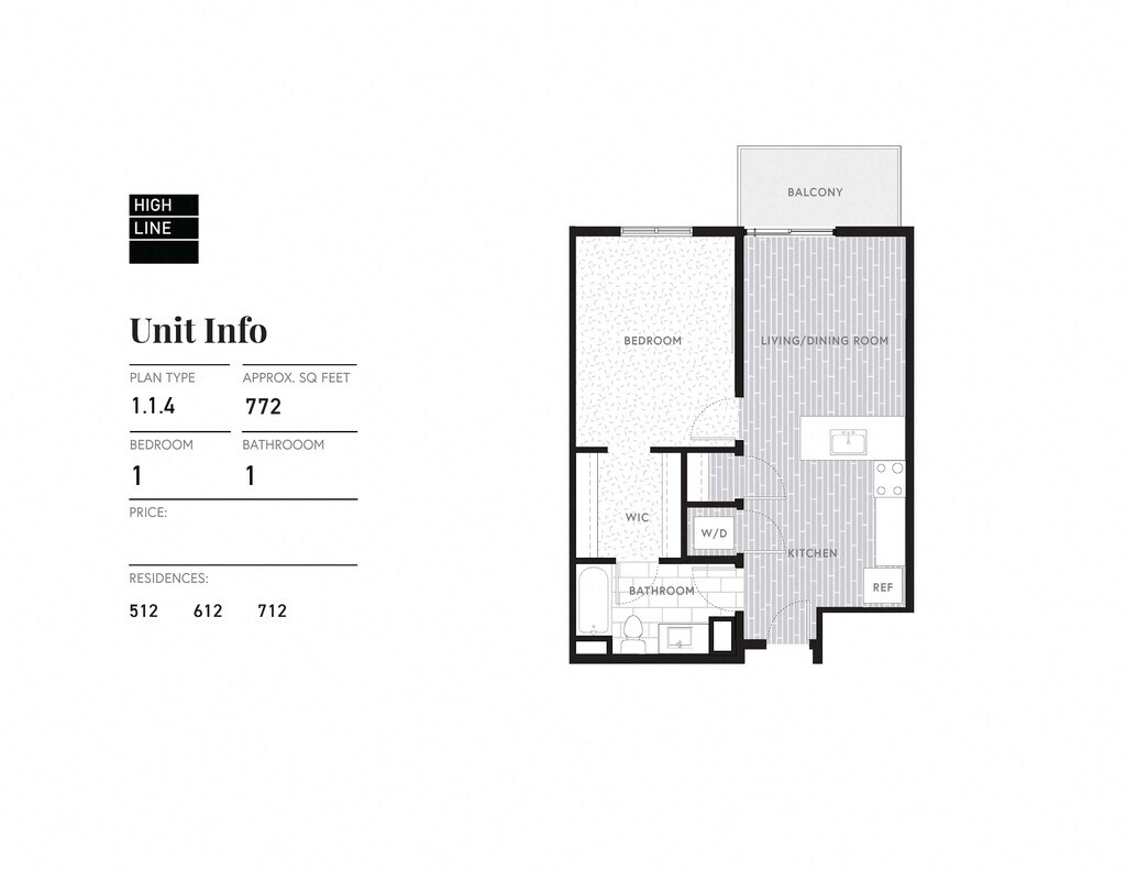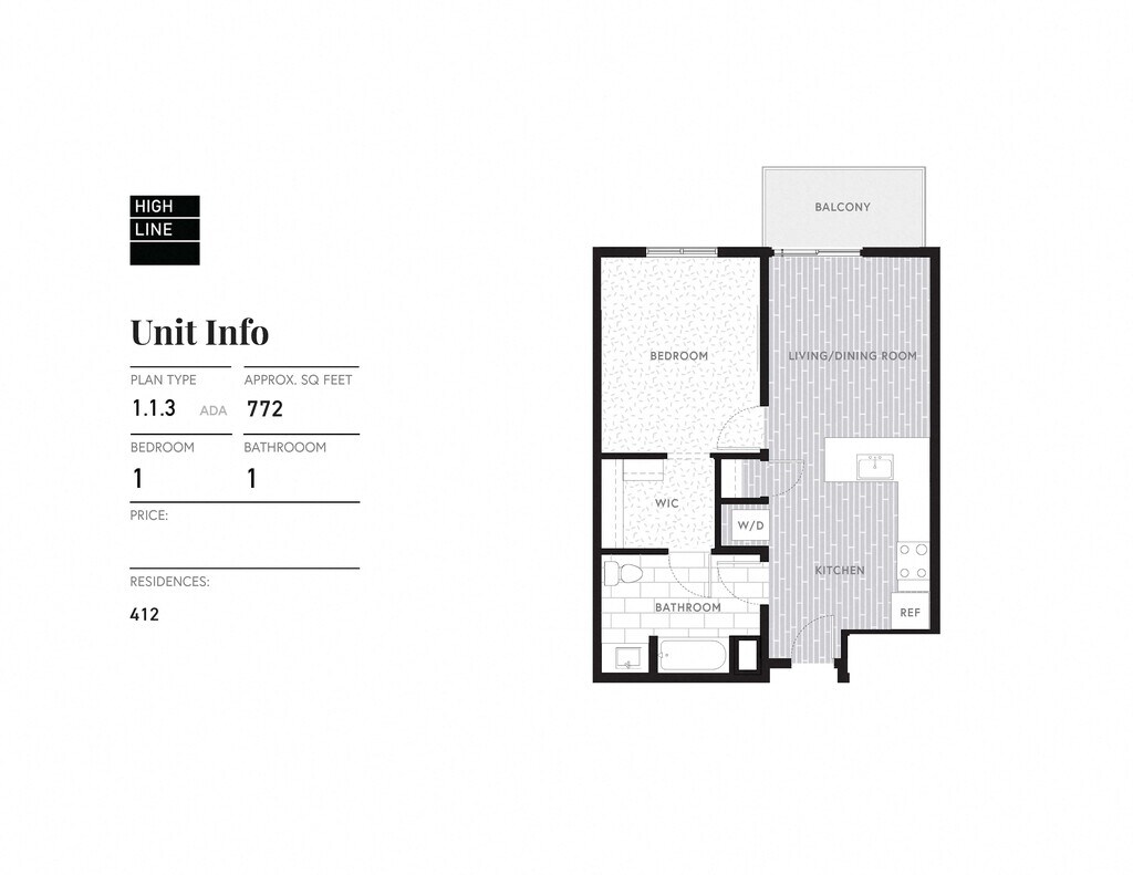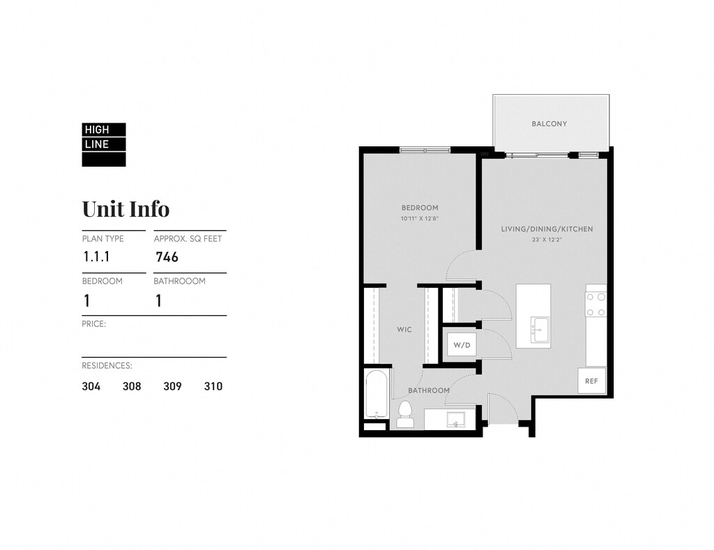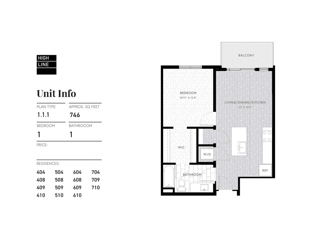 HL1.1.1 - Floorplan 8 Apartment Unit: 704Apartment Model: HL1.1.1$1,4951 Bedroom, 1 Bath, 746 sq ftAvailable January 11, 2026HL1.1.3