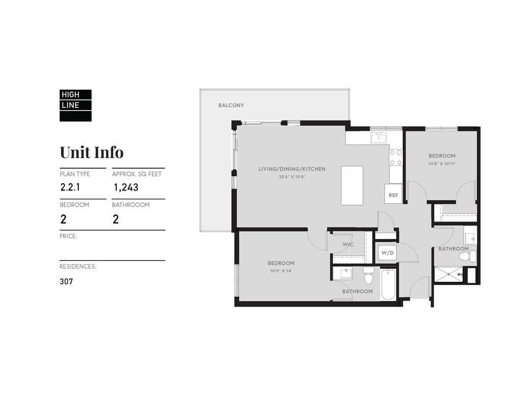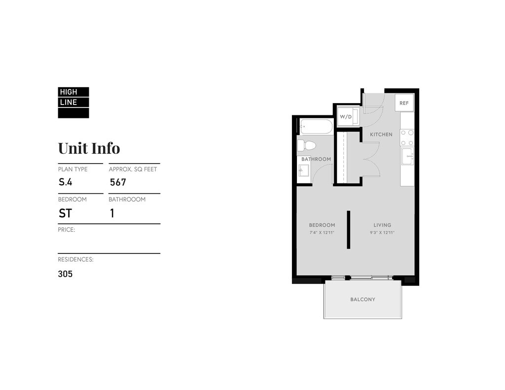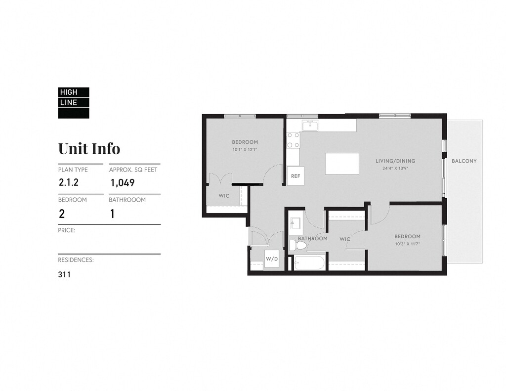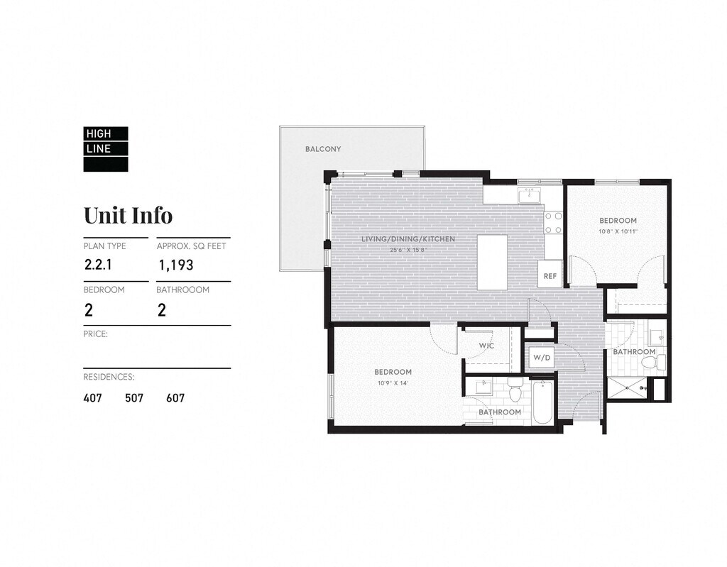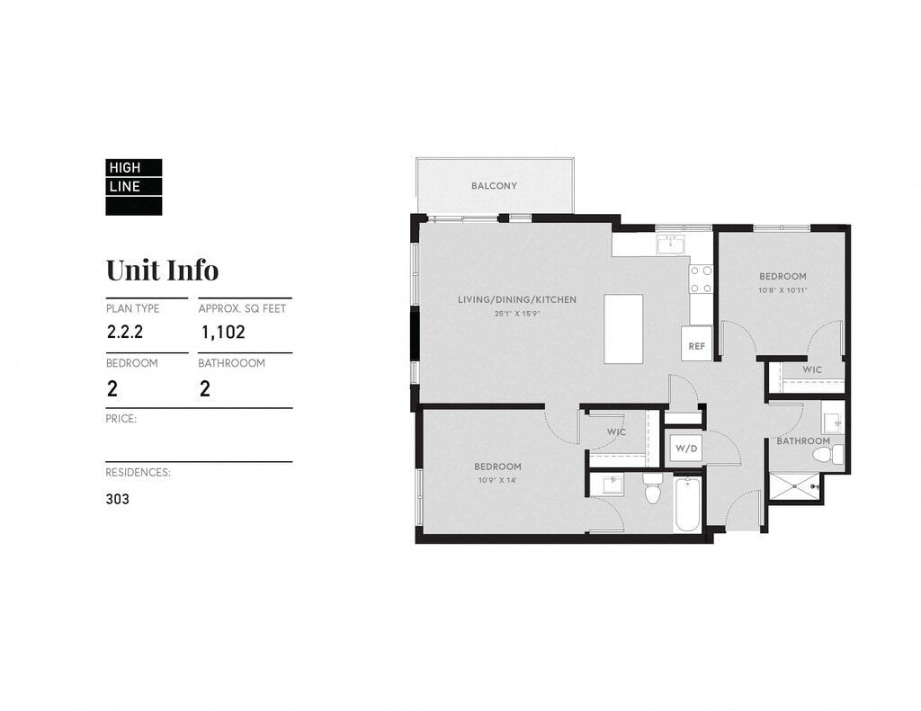 High Line Square offers Studio to 2 Bedroom apartments starting from $1,495 and having 490–1,764 sq ft. Here is the current pricing and availability: