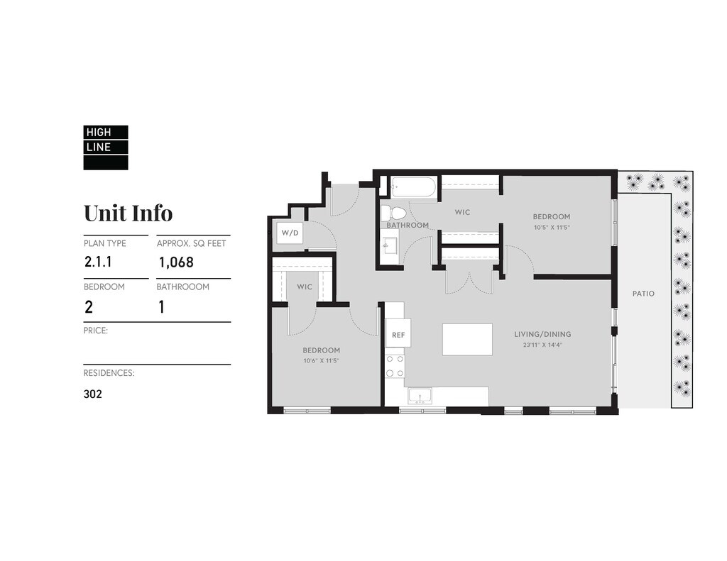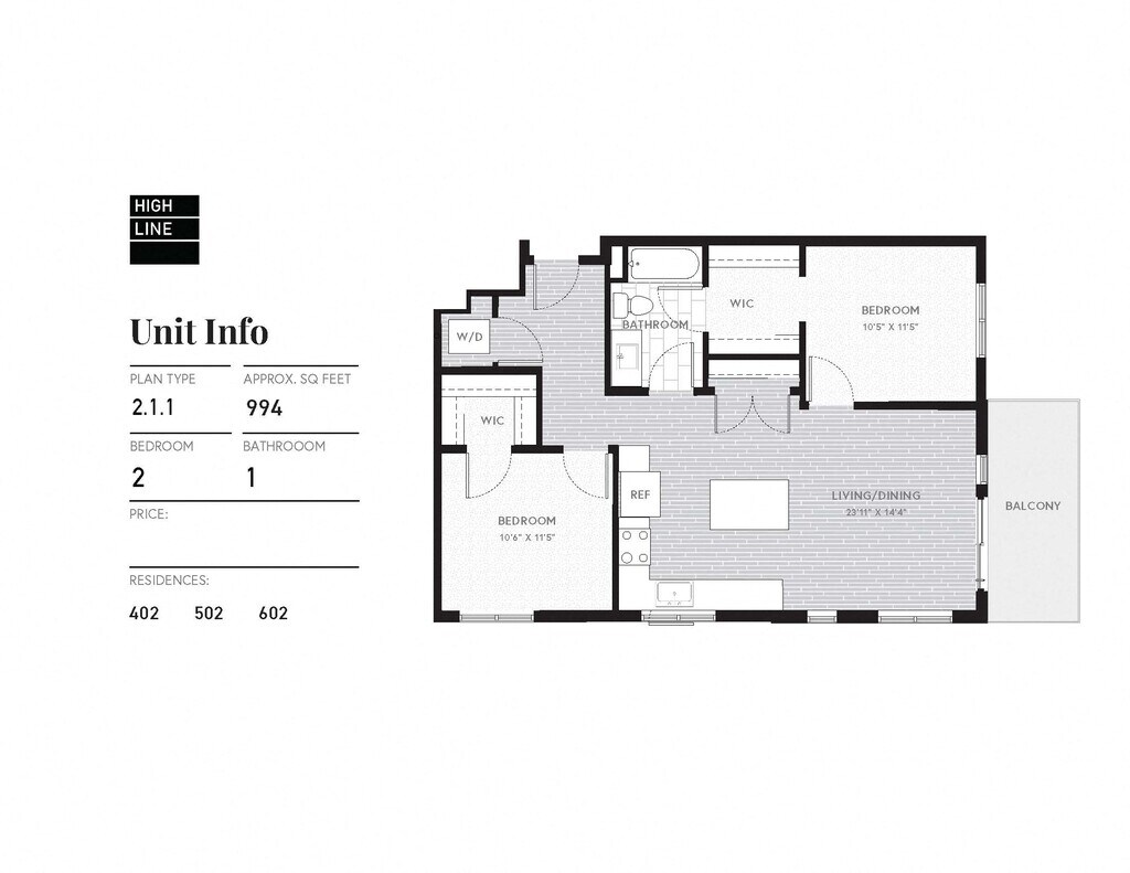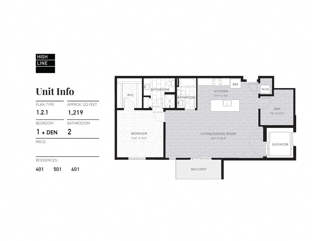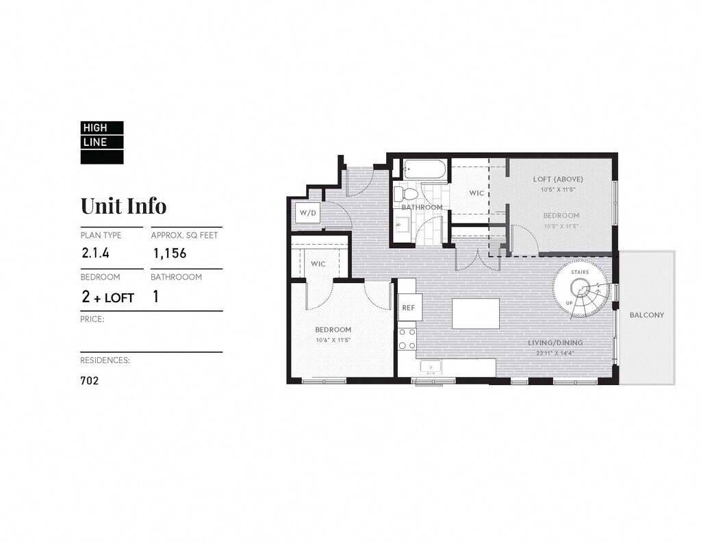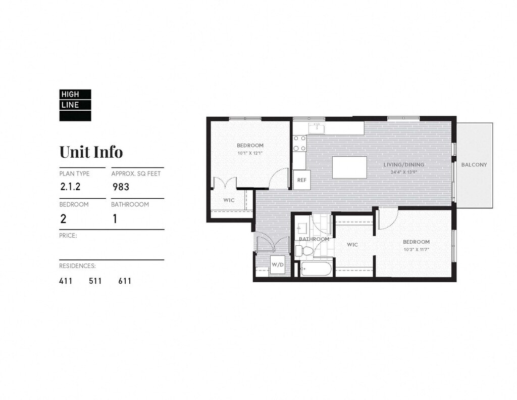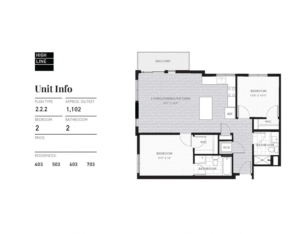 High Line Square offers Studio to 2 Bedroom apartments starting from $1,495 and having 490–1,764 sq ft. Here is the current pricing and availability: