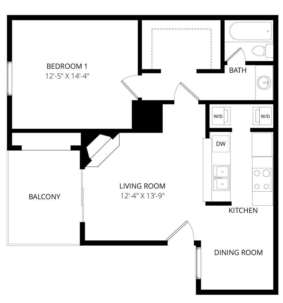 Apartment Model: A31 Bedroom, 1 Bath, 750 sq ftAvailable Now![]()