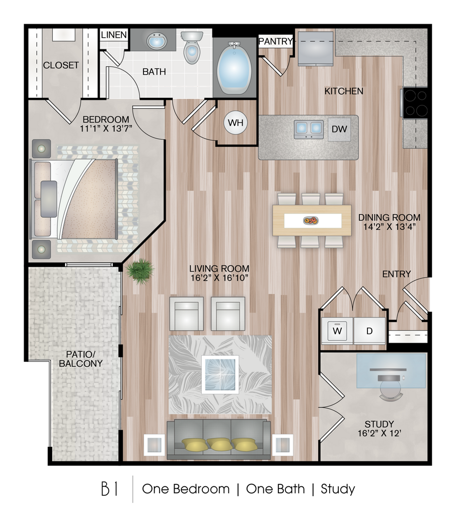 1 Bed, 1 Bath, 749 sq ftAvailable NowModel Gallery