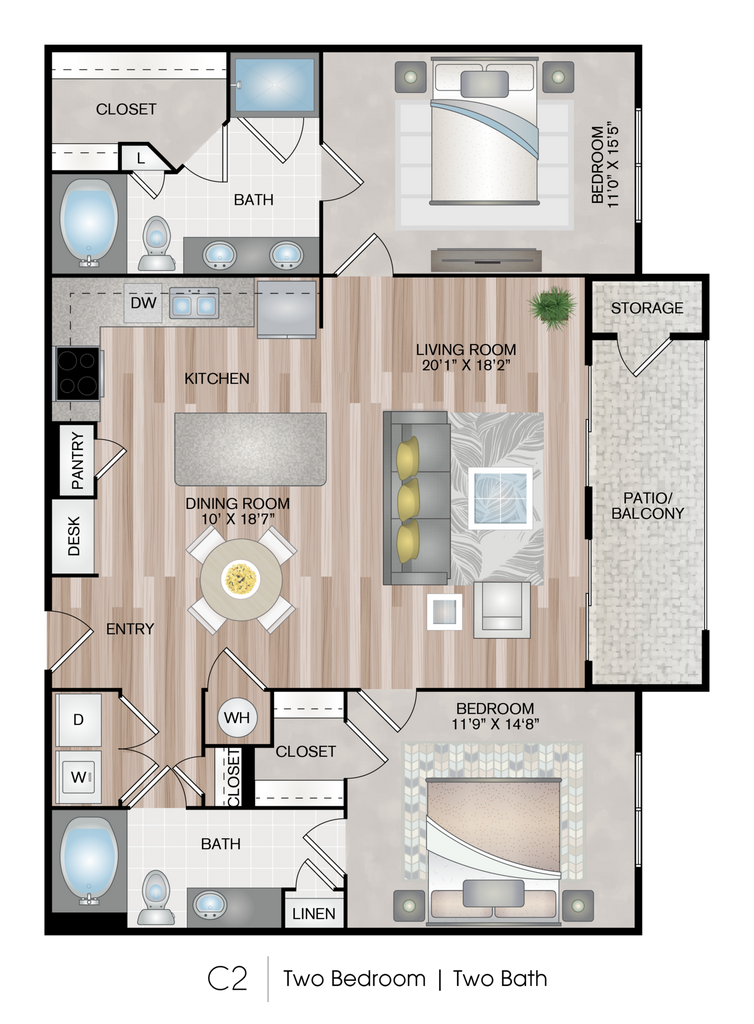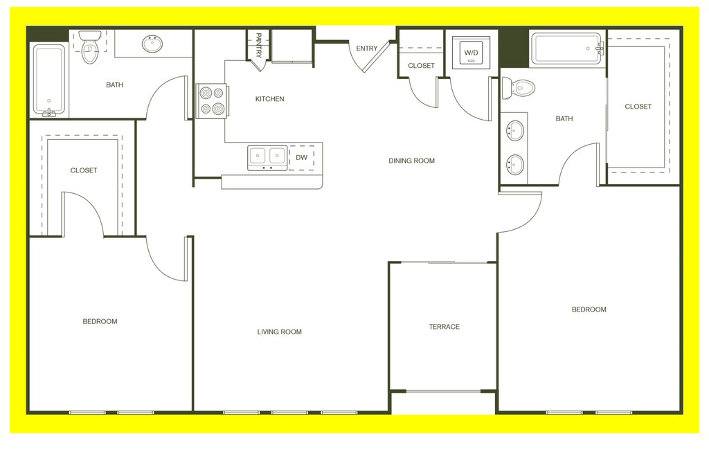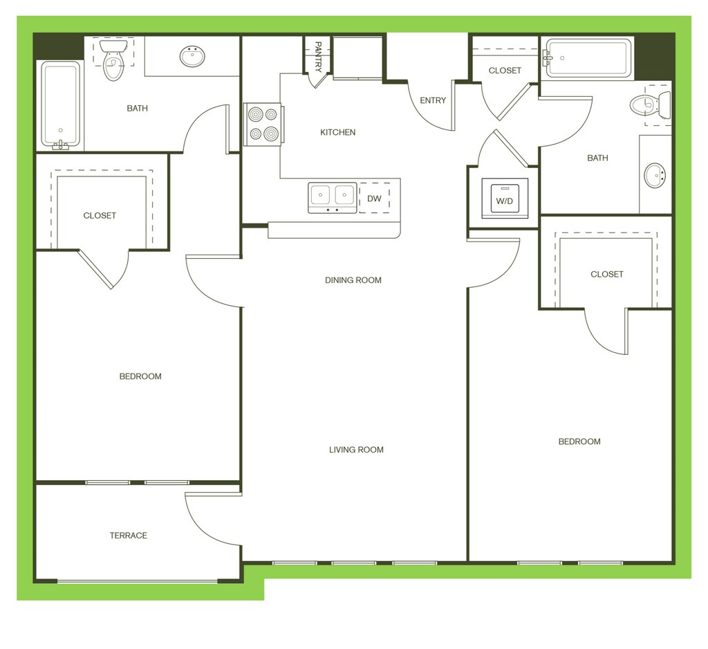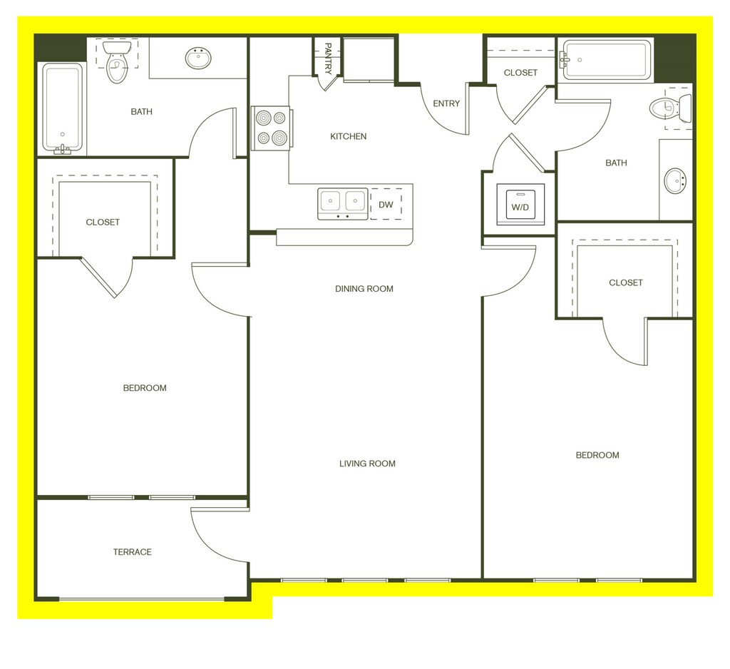 1 Bed, 1 Bath, 945-995 sq ftAvailable NowLargest 1 BedroomThis is the largest 1 Bedroom at this PropertyModel Gallery