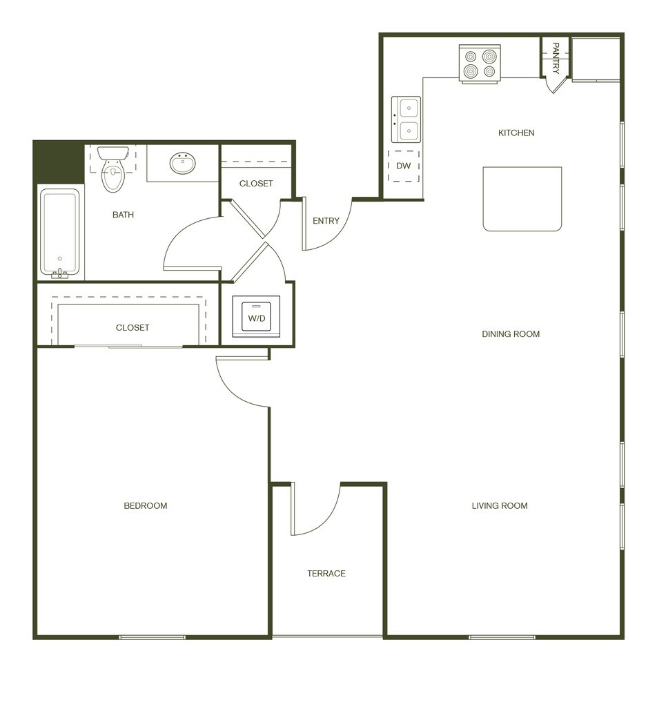 Apartment Model: A1 80From $1,3241 Bedroom, 1 Bath, 745 sq ftAvailable NowFloor plans are artist's rendering. All dimensions are approximate. Actual product and specifications may vary in dimension or detail. Not all features are available in every rental home. Prices and availability are subject to change. Base rent is based on monthly frequency. Additional fees may apply, such as but not limited to package delivery, trash, water, amenities, etc. Deposits vary. Please see a representative for details.